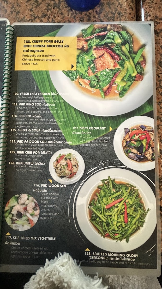 On to the star of the show— the food! Tantawan Thai Kitchen boasts a menu filled with mouthwatering options that will excite any food lover. Dive into the Tom Kha Koong, a velvety coconut shrimp soup harmoniously infused with mushrooms. For something heartier, the Wonton Soup presents a comforting blend of minced pork-filled wontons served alongside vibrant bok choy, elevating your taste buds to a place of contentment for just $15.95.