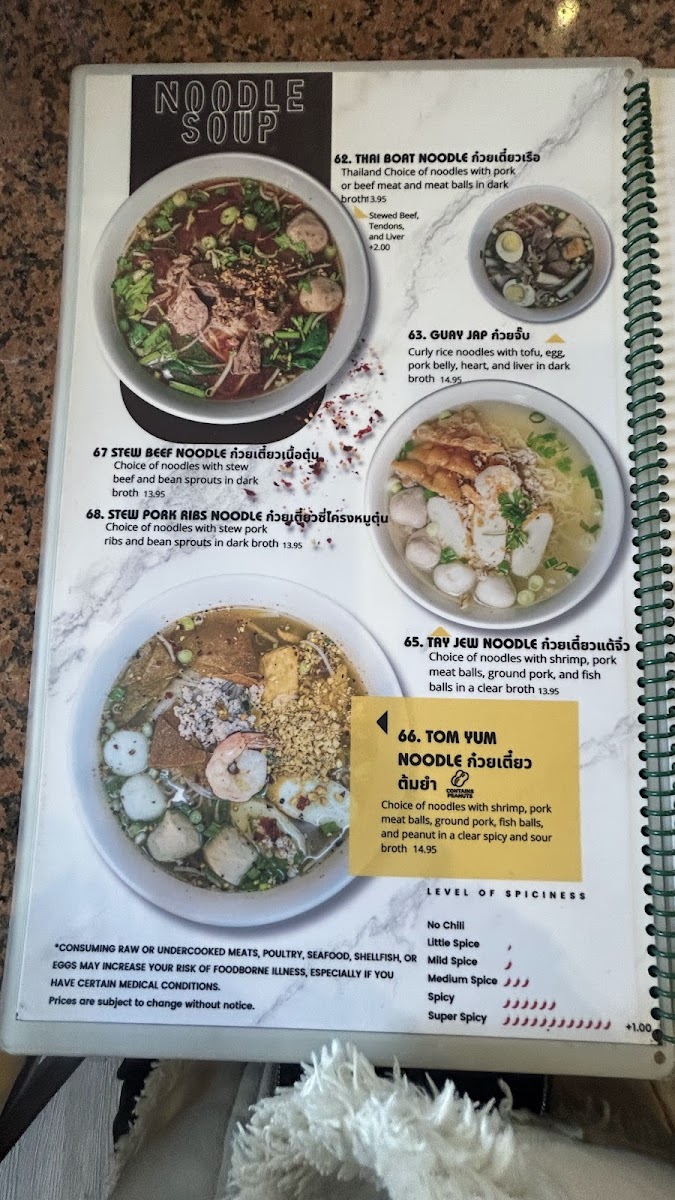 For those craving a spicy kick, the Tom Yum Pla offers a tantalizing mix of sole fillet and mushrooms swimming in a zesty broth that ignites your palate. If you'd prefer something on the lighter side, the Tofu Soup with Ground Pork is not to be missed—it's soothing and packed with flavor, perfect for a chilly day.